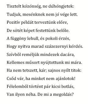 Nem kérhetünk mást – segítsetek nekünk megtalálni a megoldást – hiszen tudjátok, a jó embernek is élni kell!