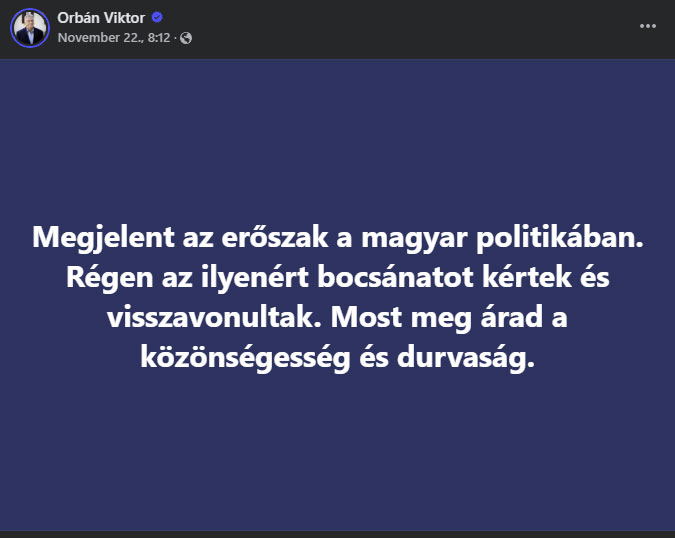 És még egy utolsó gondolatot ha megengednek a kedves olvasók. Orbán Viktor Miniszterelnök pár hete azt a kijelentést tette hogy: „Megjelent az erőszak a magyar politikában. Régen az ilyenért bocsánatot kértek és visszavonultak. Most meg árad a közönségesség és durvaság.” Miniszterelnök úr Ön szerint hol kezdődik a közönséggesség és durvaság? Menczer Tamás mai viselkedése még nem érte el ezt a határt?